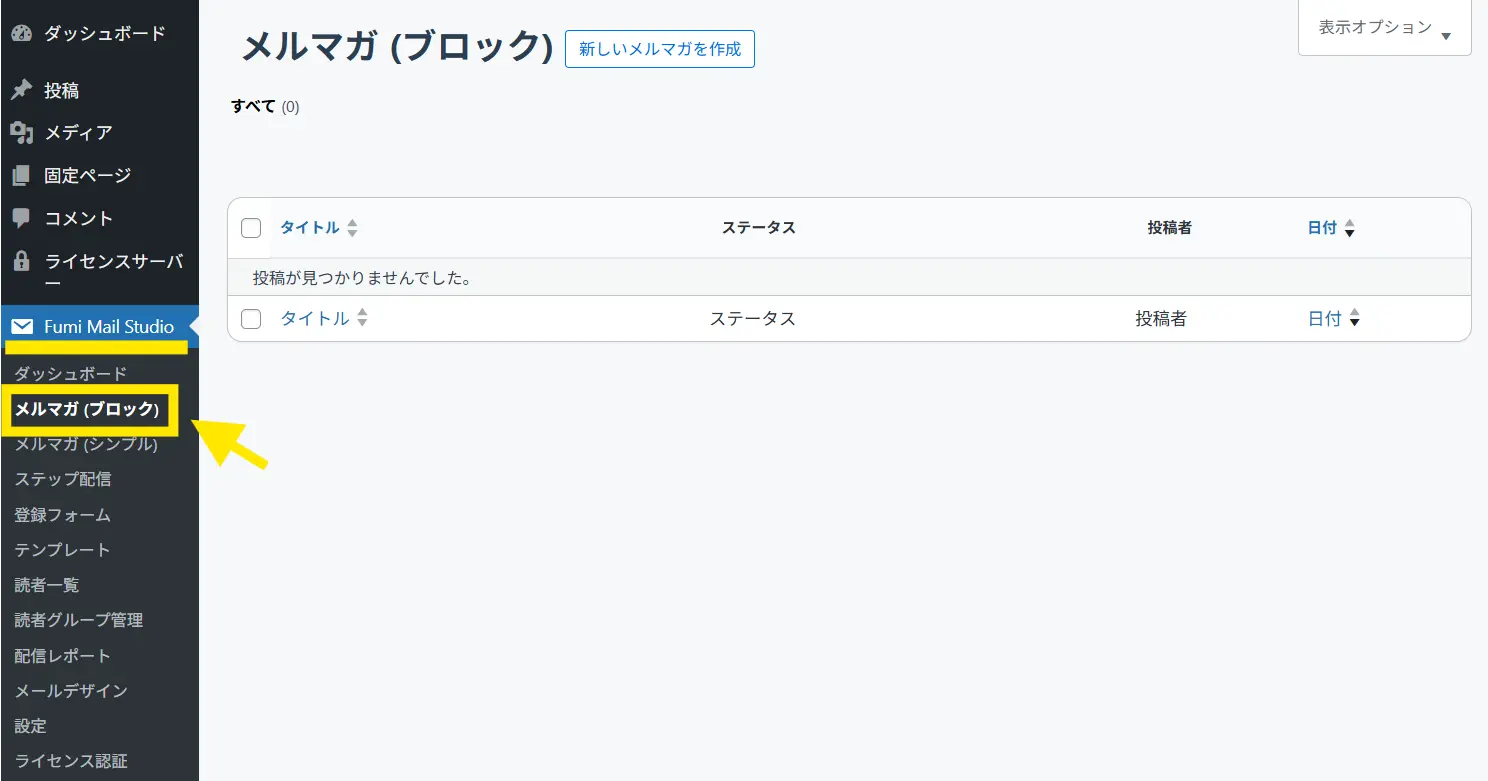 ↓「Fumi Mail Studio」>「メルマガ(ブロック)」を選びます。