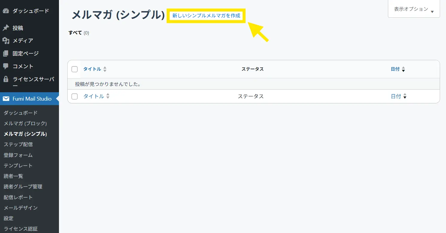 ↓「Fumi Mail Studio」>「メルマガ(シンプル)」をクリックします。