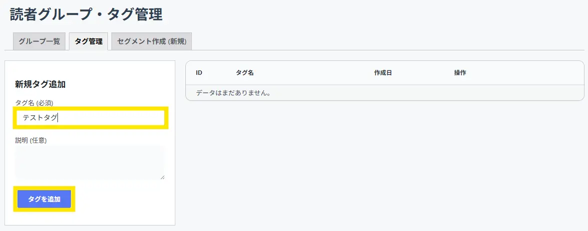 ↓タグ名を自由に付けて、「タグを追加」をクリックすれば完成です。