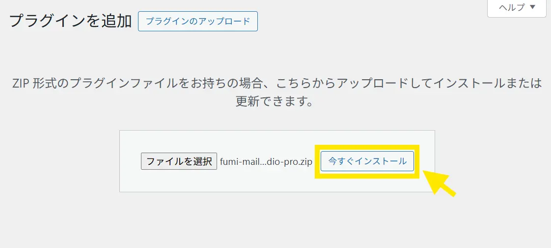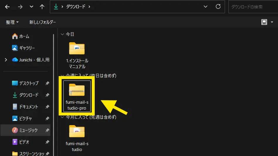 ↓パソコンの中にダウンロードした「fumi-mail-studio-pro」のZipファイルを選択します。