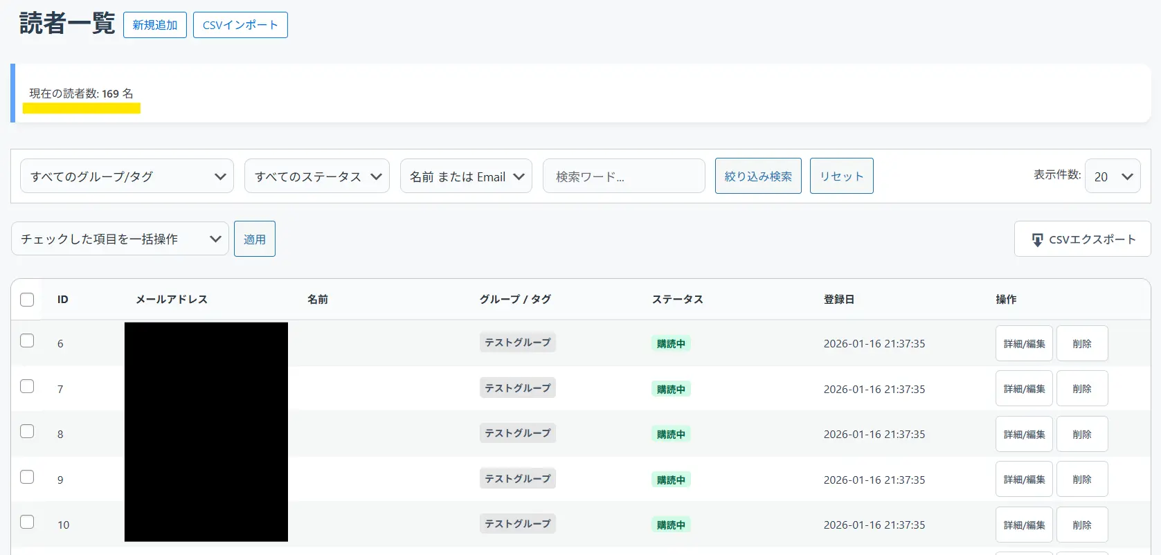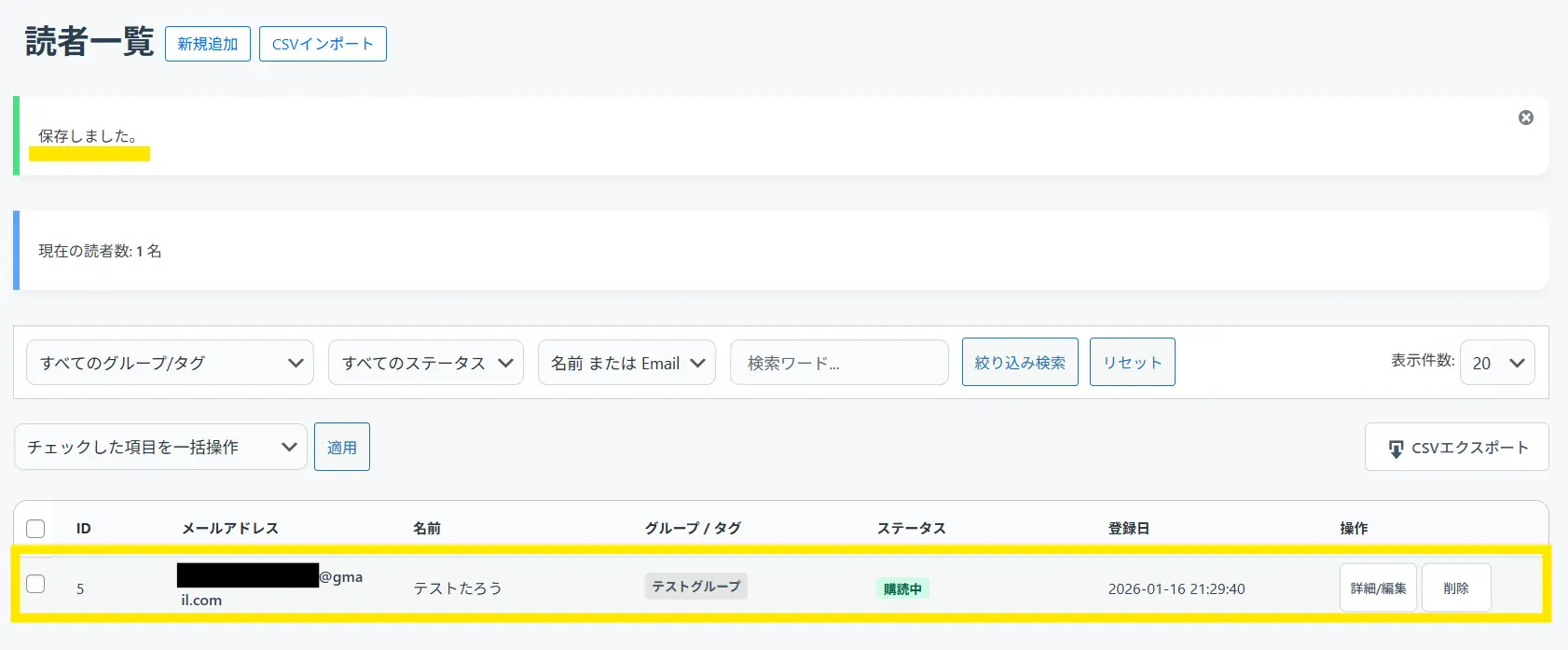 ↓これで読者が登録できました。