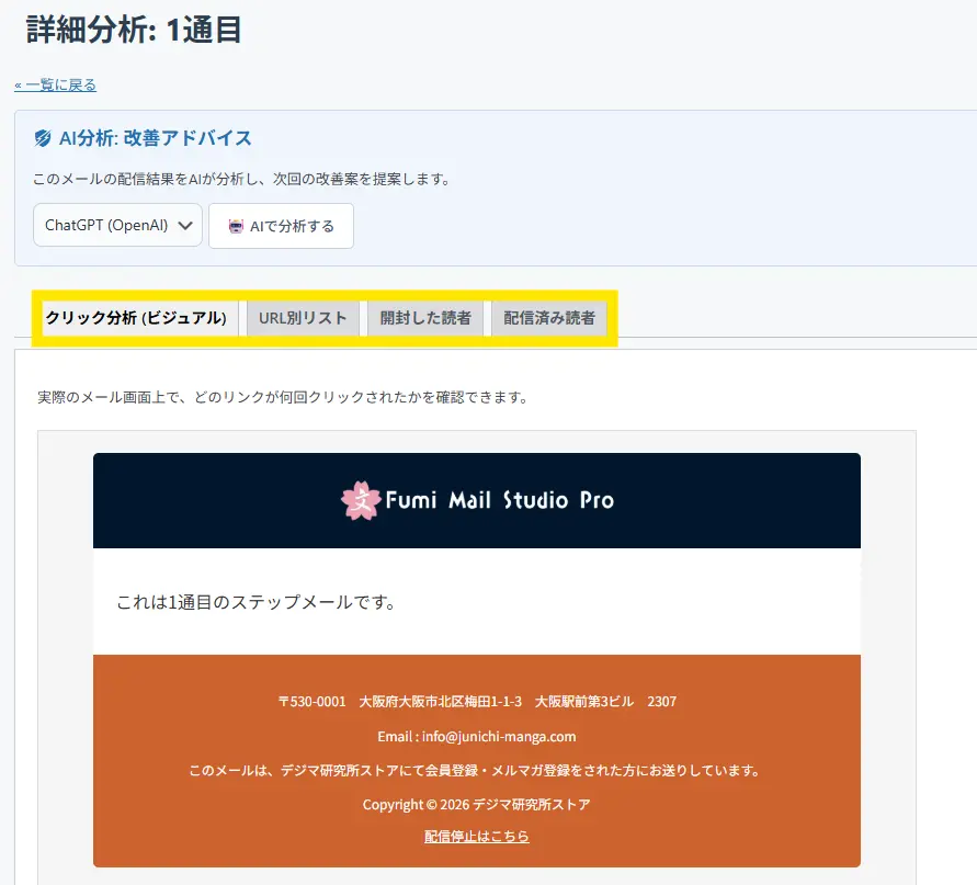 Fumi Mail Studio Proでは高機能な配信レポート機能を搭載しています。ぜひあなたのメルマガ運用に活かしていただけたらと思います。