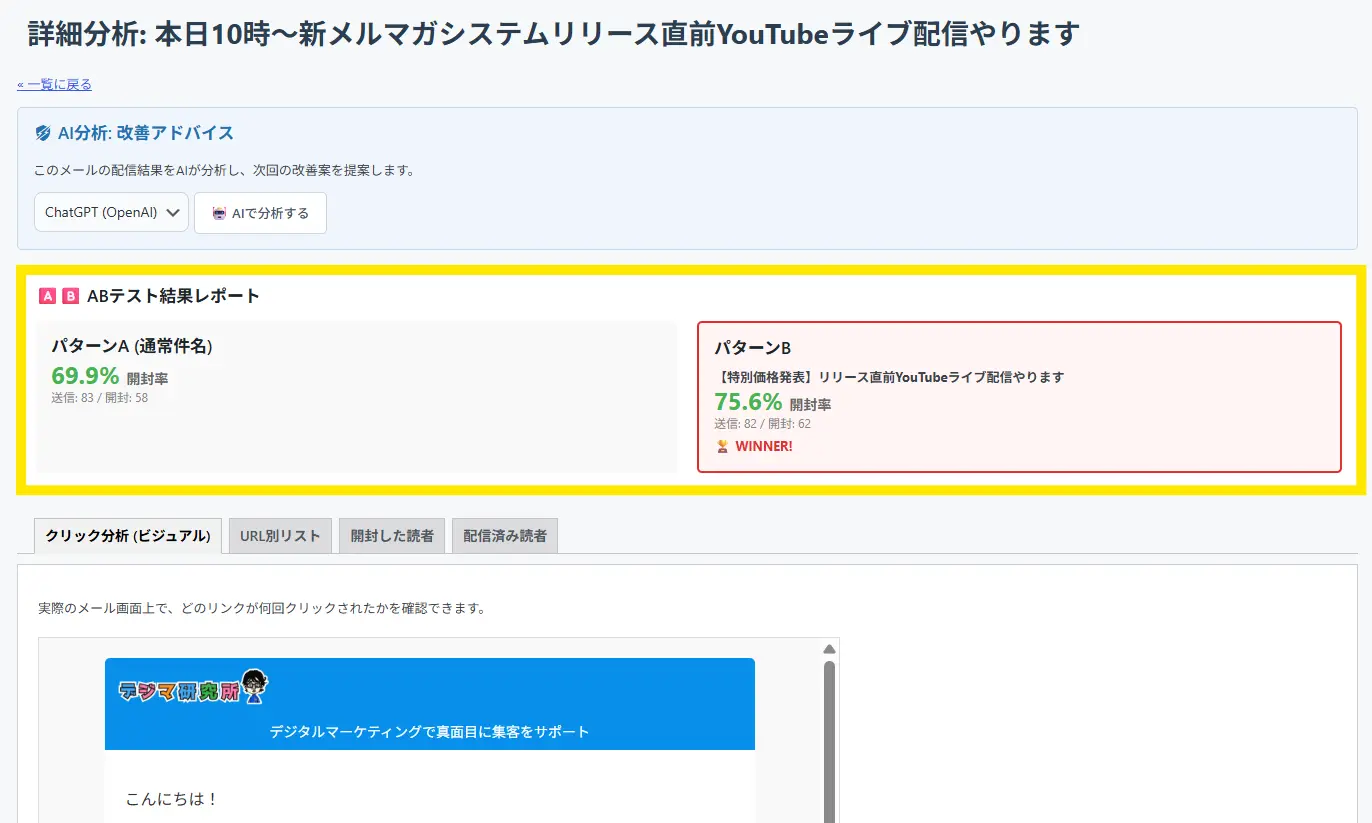↓あとは、通常メルマガ同様、結果を確認したいタブを選び分析しましょう。